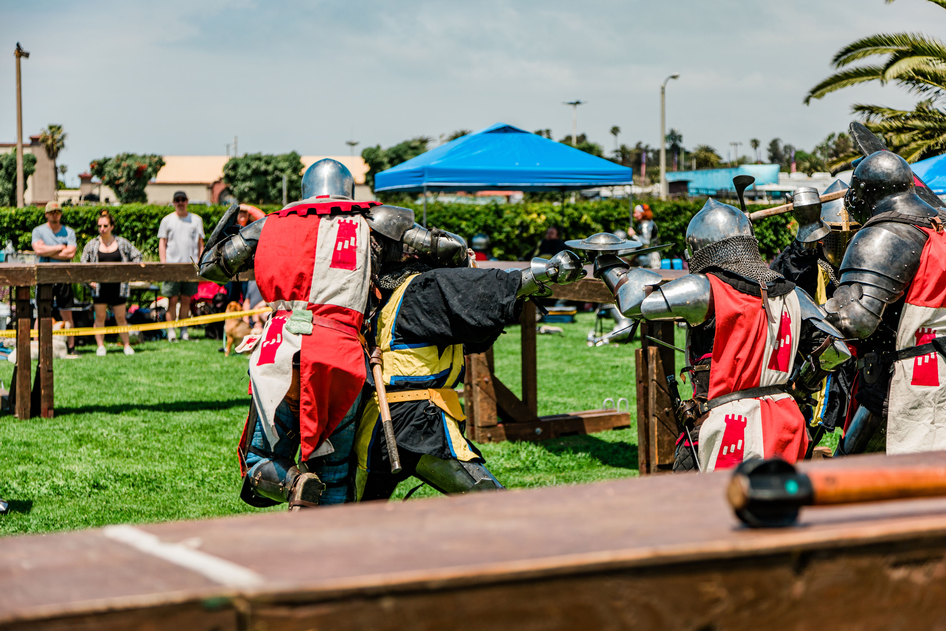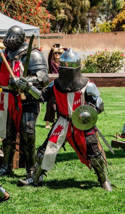 The Santa Barbara Soldados are the local Buhurt Club for Santa Barbara and Ventura Counties. We participate in an internationally-competitive sport known as “Buhurt,” (from the Middle French word “Bèhourd,” meaning “wallop”), which is a modernized form of the medieval Foot Combat Tournament. Although visually quite brutal, Buhurt is safer than many modern contact sports, because of the nature of our extensive modern & historical protective equipment.